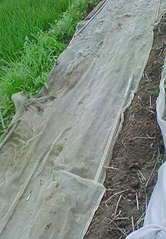 7月6日(火)畑を3年やってる友達の家に久しぶりに遊びに行って、黒豆(茶豆)の種をもらいました。彼に畑を見せてあげたら、「用水がすぐ隣にあるなんていいなあ」とうらやましがっていました。7月7日(水)七夕の今日、自分の手で初めて植えた黒豆です。豆をくれた友達が「豆は2粒を30cm間隔で植えろ」と教えてくれたので2列にして蒔き、鳥に食べられないようにとおばさんのアドバイスでネットを掛けました。橘屋の白ワインで早く食べたーい(^O^)/ ≪ 前の記事へ 一覧 次の記事へ ≫
