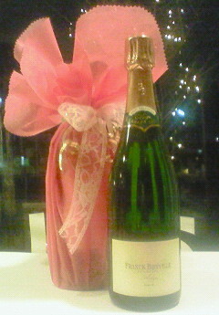 な、な、なんとあの先週ストックホルムで行われたノー ベル賞の晩餐会で当店の取扱いメーカー「フランク・ボンヴィル」が使われたというビッグニュースが飛び込んできました!過去の晩餐会シャンパーニュを見てみましょう。2001 ルイーズポメリー2002、2003、2004 ドン・ペリニヨン2005、2006 ポメリーグランクリュ2007、2008 ジャカール ブリュット・モザイク2009 ルイ・バルテレミーそして「記念すべき2010年が我らがフランク・ボンヴィル。これは、長年フランク ボンヴィルとお付き合いをしている私たちにとっても本当に名誉なこと」と輸入業者も大喜びで当主のオリヴィエ・ボンヴィルに「おめでとうございます、と電話でお祝いをお伝えしました~!!私たちも自分たちのことのように嬉しいです!」と大はしゃぎの様子。使われたキュヴェはブリュットミレジム2005こちらは現在入荷待ちで来春入荷予定! 店頭には「フランク・ボンヴィル ブリュット」が並んでいます。詳しくは商品案内でどうぞ。ノーベル賞のオフィシャルサイトはこちらhttp://nobelprize.org/nobel_prizes/award_ceremonies/banquet/menus/menu-2010.htmlMENUの最初にVINS「Champagne Franck Bonville」と記載があるでしょ(^O^)/ ≪ 前の記事へ 一覧 次の記事へ ≫