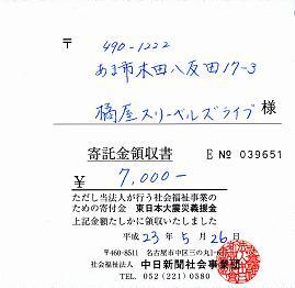 本日、中日新聞社本社へ「橘屋スリーベルズライブ」として義援金を寄託しました。