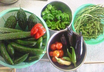 運良く豪雨の前に畑作業を終え、収穫はこの通り。