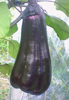 先週畑で発見した三つ子茄子が大きく育ったので、本日収穫。