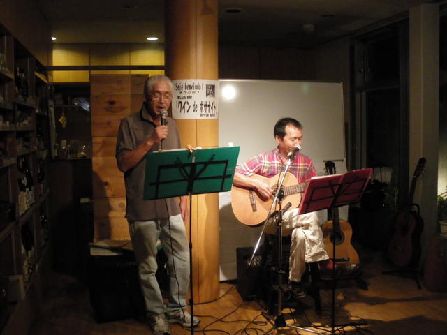 昨日の「ワインdeボサナイト」は女性ヴォーカルの凛さんが体調不良で来られない中、ダンディ・ガガがピンチヒッターで登場。けっこう難易度の高い曲にチャレンジしたので、冷や汗ものでした(~_~;)といいながら、沢山唄えたのでお客様には迷惑だったかも・・・その中で昔からボサノバ聞いてるという女性がおられ、ボサナイトオフ会にお誘いしました。これはとてもうれしいニュースです。この方は嵐もお好きなようで、夫婦共通のメンバーになりそうです。大阪から出演のKobaさんのblog。http://koba.de-blog.jp/bn/2011/09/post_bd92.htmlライブの流れを掲載してもらってます。 ≪ 前の記事へ 一覧 次の記事へ ≫
