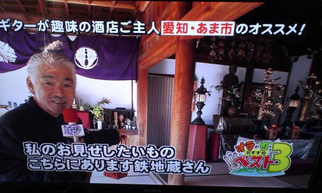 「西川きよしのご縁です」ご覧頂けましたか!?どう編集されているのか結構不安でしたけどさすが制作会社、うまいもんですね"^_^"ご紹介した中で「スーパーうおた」さんのうなぎの蒲焼は、スーパーで販売する中では本当にかなりレベルの高い味わいです。で、今朝は開店と同時にTV「観たよ!」「蒲焼はあるの?」と結構な反響があったそうで奥さんがTVはすごいと感心してみえました。お好きな方は一度食べてみてください。土用には予約がないと買えませんからご注意を(^_^)「法蔵寺」さんの鉄地蔵はこれまた貴重なお宝!蜂須賀小六公が桶狭間の合戦に持参したのは鉄地蔵のあまりの重さに、錫丈だけ。その鉄錫丈は蜂須賀家の家宝として徳島に渡り、2002年442年ぶりに里帰りしご対面しました。当時、イベントに参加してした私にも思い入れがあり懐かしく感じました。トーイ君もお疲れ様でした。 ≪ 前の記事へ 一覧 次の記事へ ≫