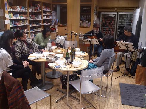 昨日は寒い中、おでんを囲み7名で裏ボサ開催。新たにAさんの参加があり更に楽しく盛り上がりました。今回も「ご縁です」から始まった裏ボサはご縁で繫がっていました。実は私の娘は小学生の頃、彼女のお母さんのバレエ教室に通っていて、彼女にもお世話になっていたのです。普段はJAZZをステージでも唄っているという彼女は、声の質が低めでなかなか渋い歌を披露してくれました。また、裏ボサメンバーの男性3人で構成している「ダンディーズ」ライブを、12月22日(土)14:00~「あまカフェ」にて予定していることもあり、今迄で一番歌を唄ったかも・・・お時間のある方はどうぞお出かけください。 ≪ 前の記事へ 一覧 次の記事へ ≫