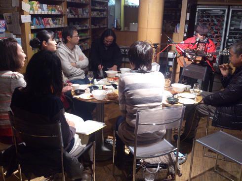 ことこと煮込んで味の浸みた3日目のどて煮に、持ち寄った数々の料理にお菓子や果物。ひとしきりお腹に詰め込んで、唄会は始まった。それぞれ腕を上げ、曲も増え、今年は益々楽しみな裏ボサになりそう。昨年末X'masボサライブをしたあまカフェさんから再度リクエストがあり、早速1月26日(土)にライブをさせて頂くことに・・・お茶代だけで聴けるボサノバ14:00~。お暇な方は是非どうぞ!あまカフェ http://amakafe.jimdo.com/ ≪ 前の記事へ 一覧 次の記事へ ≫