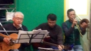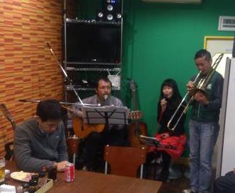 4月20日遂にやってしまいました"^_^"本場ブラジル人の前でボサノバの演奏。日本人、ブラジル人のお客様が入り乱れ、大いに盛り上がりました。出演者もなんと男女合わせて8名。豪華?メンバーでボサノバ・オンパレード日本人がポルトガル語で唄うのに驚かれ、大変喜んでくれました。これからも3,4ヶ月に一度なんて話も出ました。こちらは出演者一同、本場の人の前で唄うとあって、緊張しまくりでした。おいしいブラジル料理を食べながら、BossaNova最高! ≪ 前の記事へ 一覧 次の記事へ ≫