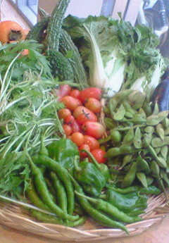 今日は台風14号の影響で全国的に雨模様。日曜日までは趣味の畑作業ができないかも(^_^;)午前中の用を済ませた後、今晩のつまみ、枝豆を畑に寄って収穫。毎日枝豆でも、ぜんぜん飽きが来ないのは自分の作ったものだからでしょうね(^・^)さて、今日は採れたての枝豆と昨日採った野菜達を紹介します。ピーマン、甘長ピーマン、京水菜、ミニトマト、枝豆、ナス、ミニ白菜、ゴーヤと柿です。こんな風に収穫があると健康的で、食費も下がり毎日が助かります(^O^)/今日はどんなワインにしようかなー・・・っと考えましたが、休肝日でした(^_^;) ≪ 前の記事へ 一覧 次の記事へ ≫