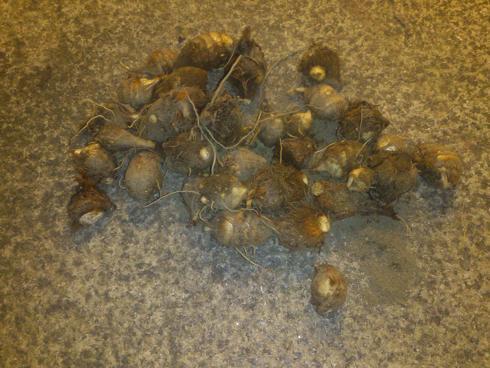 早速スコップで里芋から掘ってみたら、これは期待したほど芋が付いてなくチョッピリ残念。