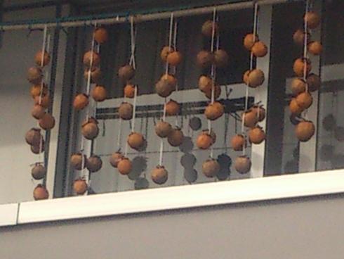 今や風物詩になった秋の楽しみ落花生はあと一週間くらいで食べられる状態に干し柿はと言えば、横着にも頂いた渋柿を近所の居酒屋のママに無理を言って、全部剥いて貰い吊るしたのも奥さんという有様。今年の干し柿は特においしいかも・・・ ≪ 前の記事へ 一覧 次の記事へ ≫