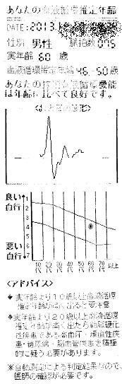 現金無いけど元気あるよー、と動き回る日頃の成果?を100円で血液循環推定年齢が計測できる機械があったので試してみました。