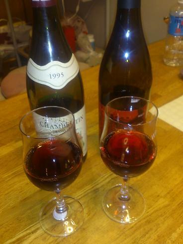 1つは仏ブルゴーニュの特級ワイン「シャンベルタン1995」もう一つは米オレゴン州のピノ・ノワール2011で、価格差約2万円以上。