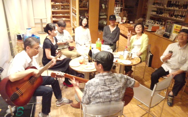 本日9か月ぶりに裏ボサ(ボザ好き仲間の歌いあっこ)開催同じ波長のメンバーが集うことは最高の喜びです!メンバー5名に名古屋、豊田、遠くは大阪からの2名と9名参加で愉しいボサタイムを過ごしました。それぞれが進化し個性を発揮して聴かせてくれる唄には拍手、拍手。何時間あっても限がないくらい愉しい空間に加え、昨日誕生日を迎えた店長(ダンディー・ガガ)を参加者全員で祝ってくれたことには更にビックリです。本当に有難うございました。大阪から参加のYUKIさん大阪ボサノバの立役者Kobaくん ≪ 前の記事へ 一覧 次の記事へ ≫