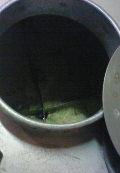 (画像は舟口から出て溜まったしぼりたて生原酒です)